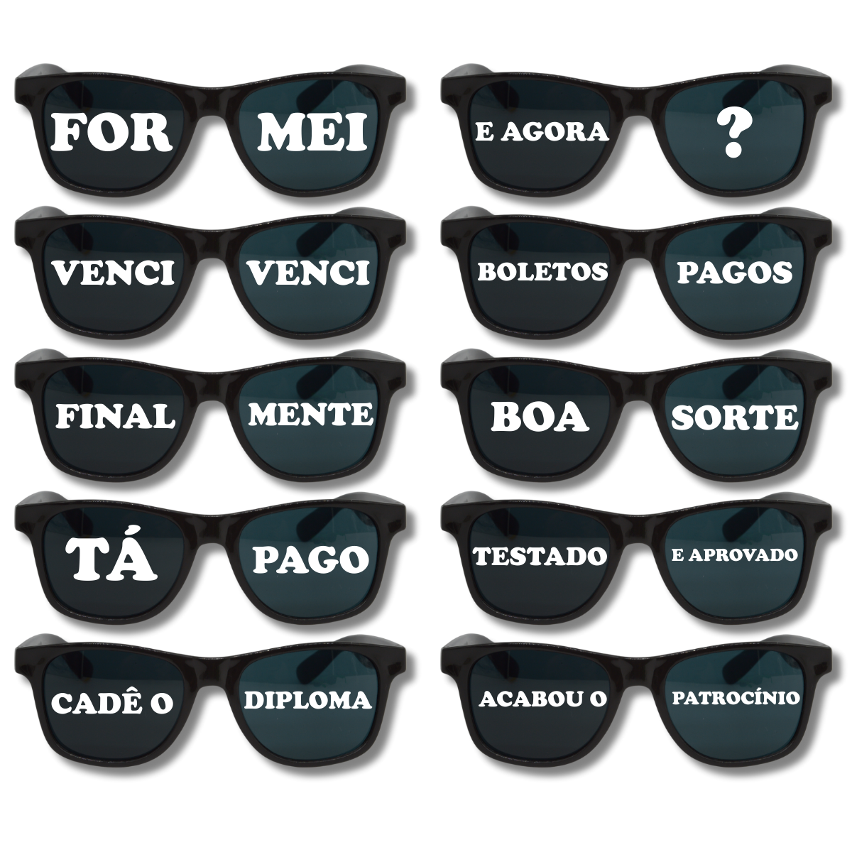 🎓 Kit 10 Óculos de Formatura – Frases Divertidas para Animar a Festa!