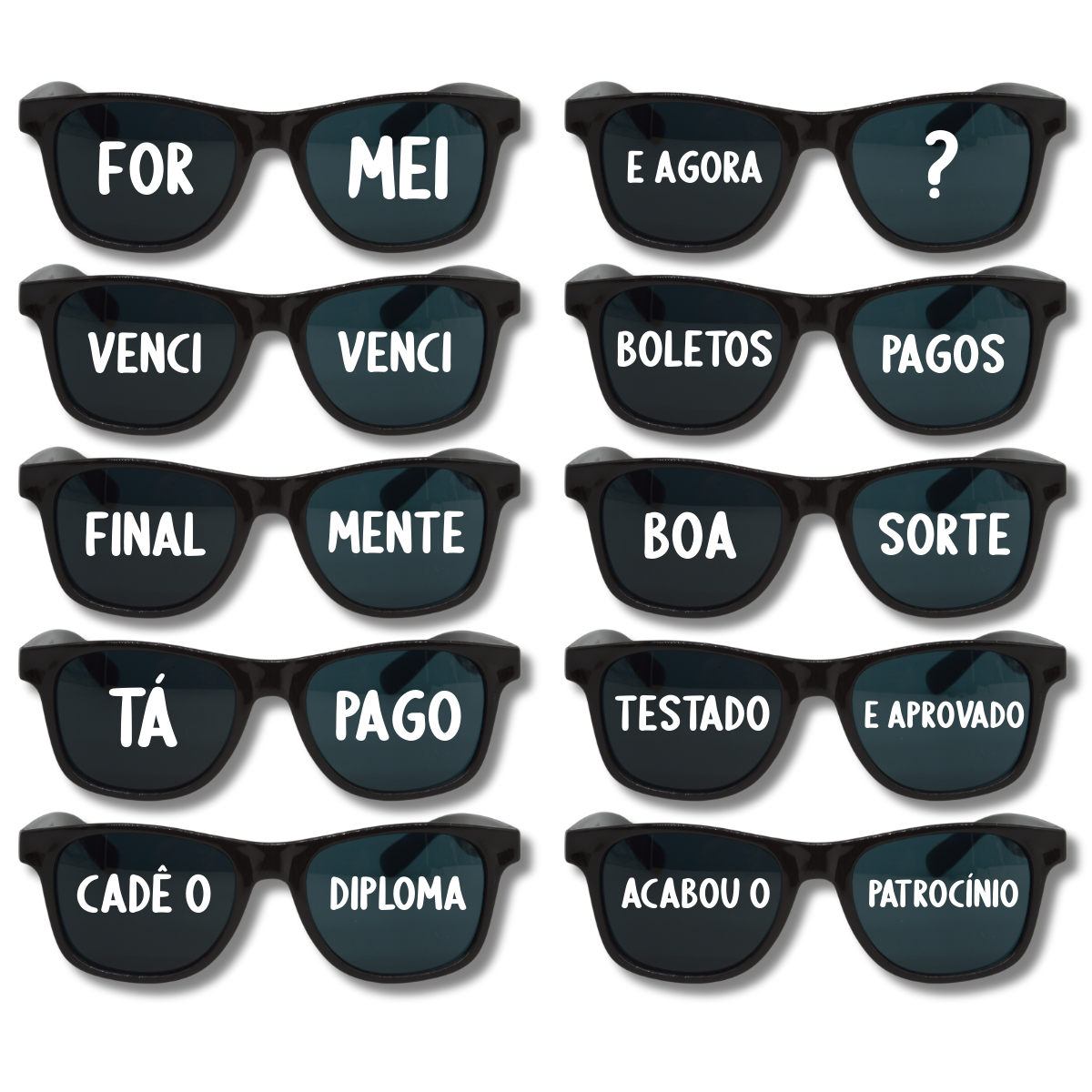 Deixe a sua formatura ainda mais inesquecível com este kit exclusivo de 10 óculos temáticos, cada um com uma frase divertida e perfeita para fotos, brincadeiras e para garantir boas risadas com a turma! Ideal para formandos, convidados, sessões de fotos e decoração de mesa.